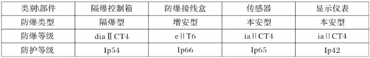2、該裝置一般由隔爆控制箱、防爆接線盒、傳感器與硅示儀表組成,防爆與防護(hù)等級為: